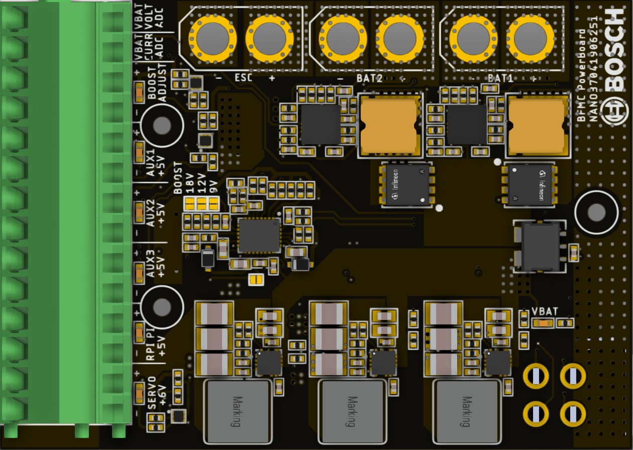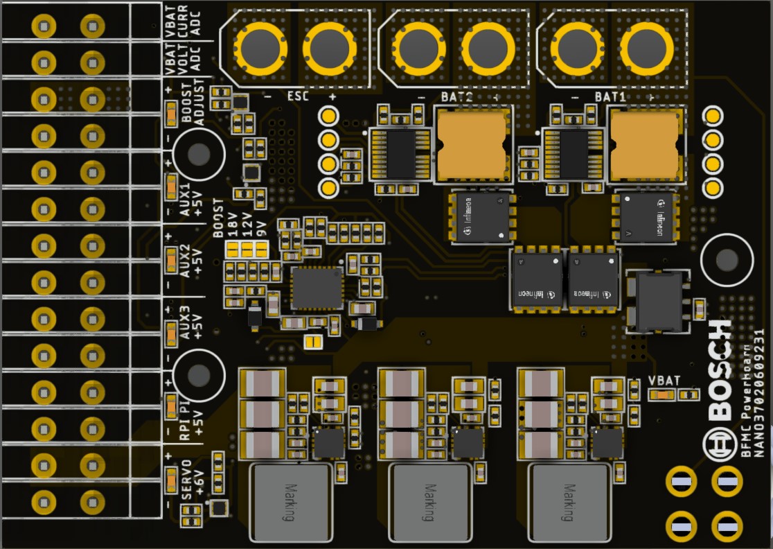 On the robot we built a power distribution board which has the role of managing all the aspects of the power management inside the car.